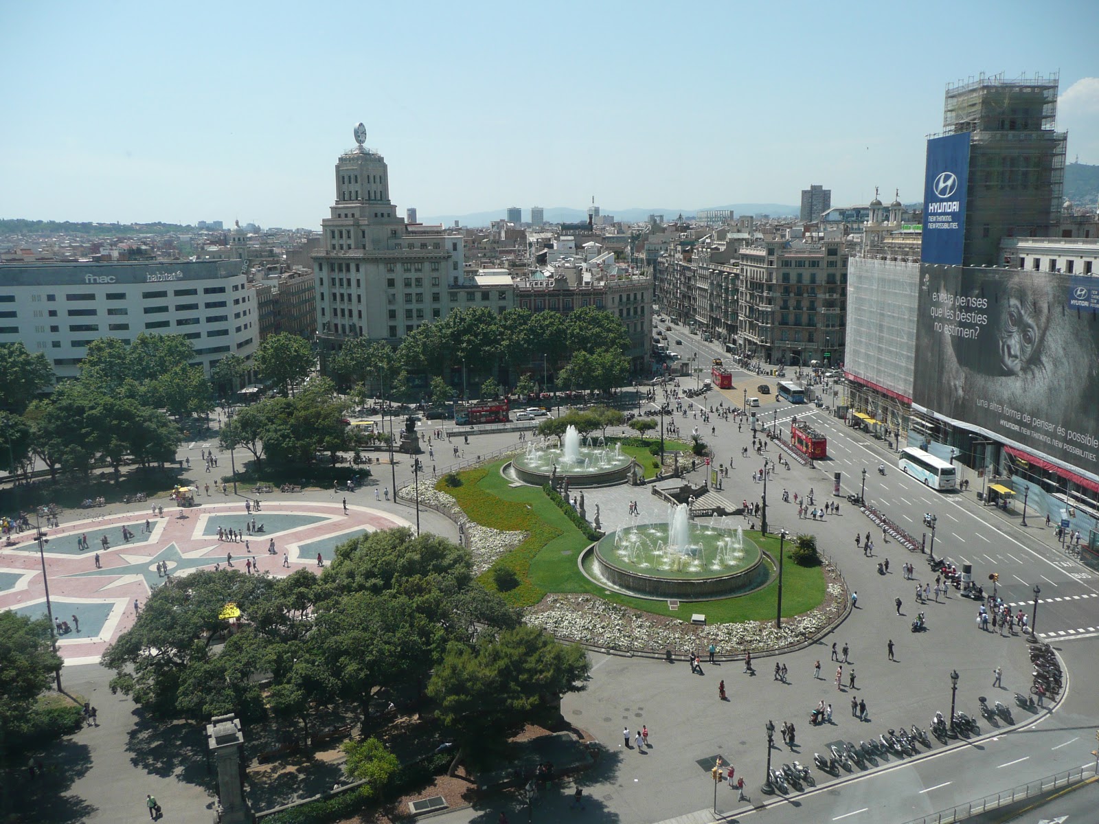 | Praça da Catalunha observada a partir de uma janela do restaurante do Corte Inglês |