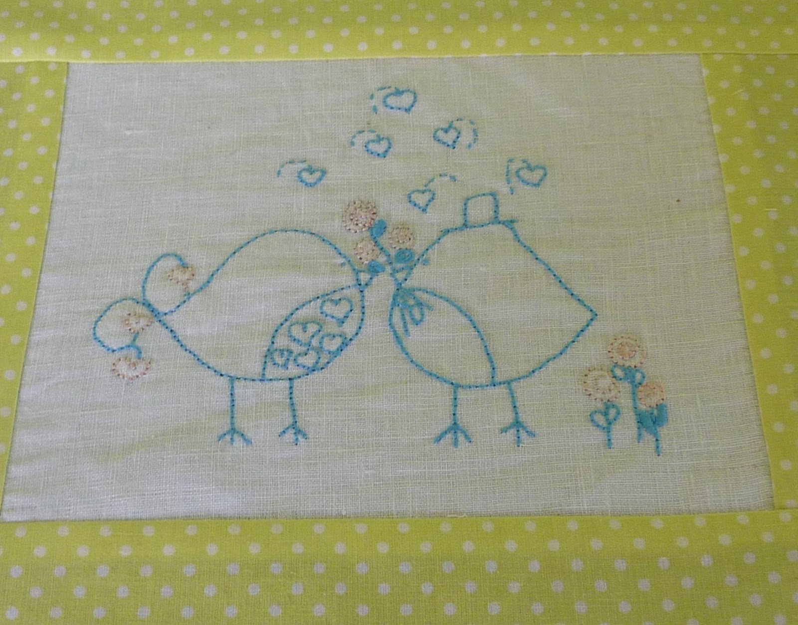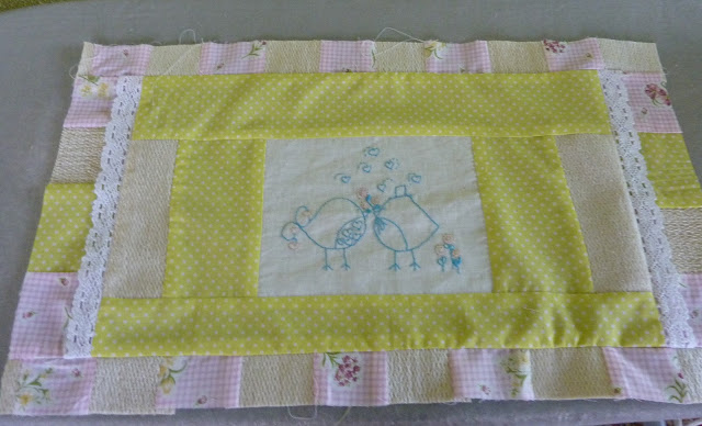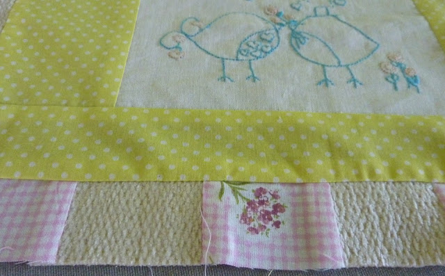 | ... e aproveitei estes passarinhos bordados há imenso tempo, para os quais não tinha ainda descoberto destino. Cortei igualmente uma margem a toda a volta |