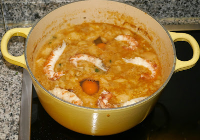 | Cozi os camarões. Com a mesma água amoleci o pão ... |