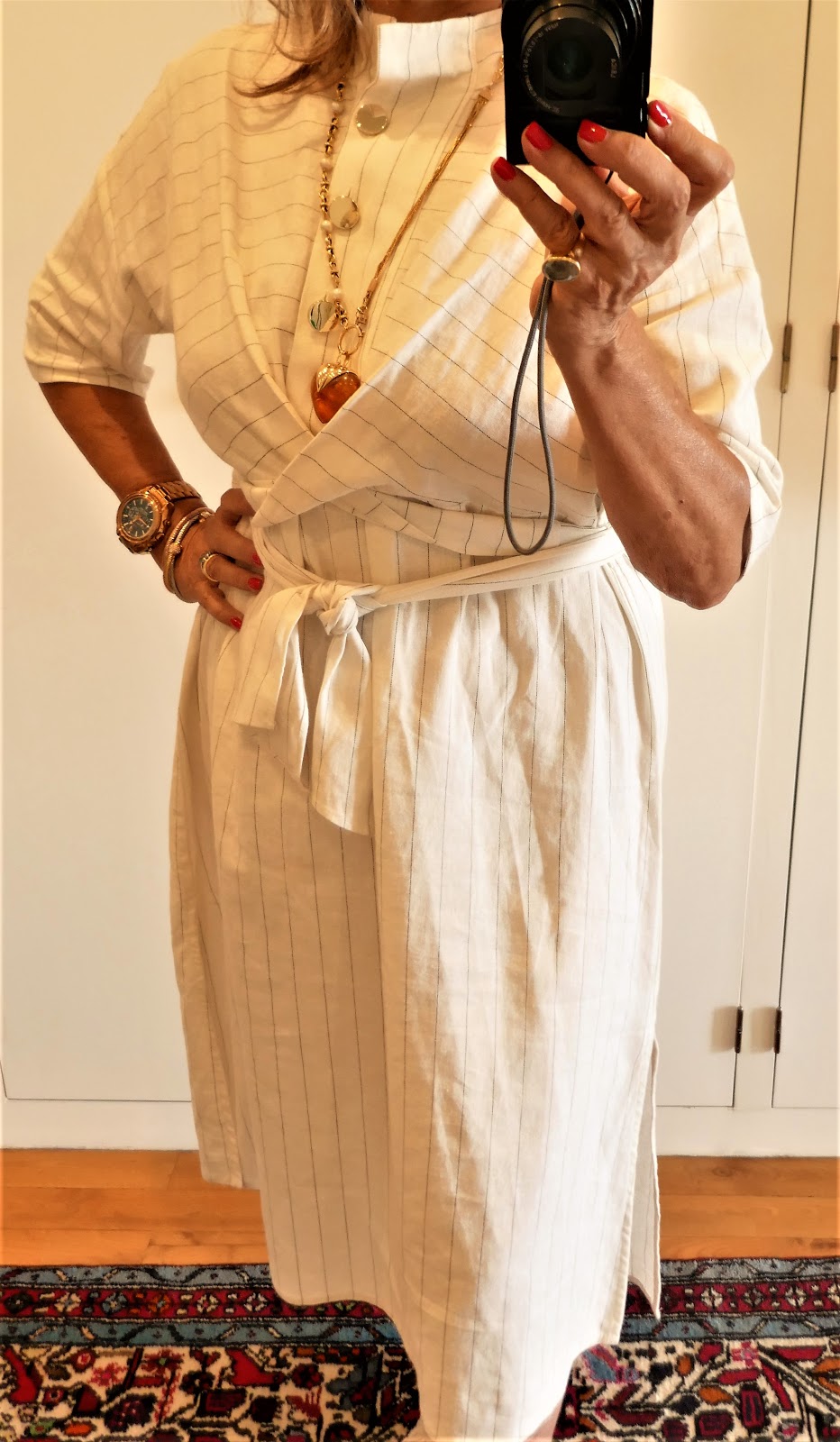 Ontem, conforme tínhamos combinado ( eu e eu) pus mãos à obra e tratei de cortar os punhos e encurtar as mangas do vestido de linho. É que aquilo não era nem Verão nem Inverno. Era uma impossibilidade que me manietava movimentos, me incomodava, fazia calor, era impróprio para o frio e que, inconscientemente excluía, apesar de gostar imenso de branco e bege e de me sentir imensamente confortável com linho.