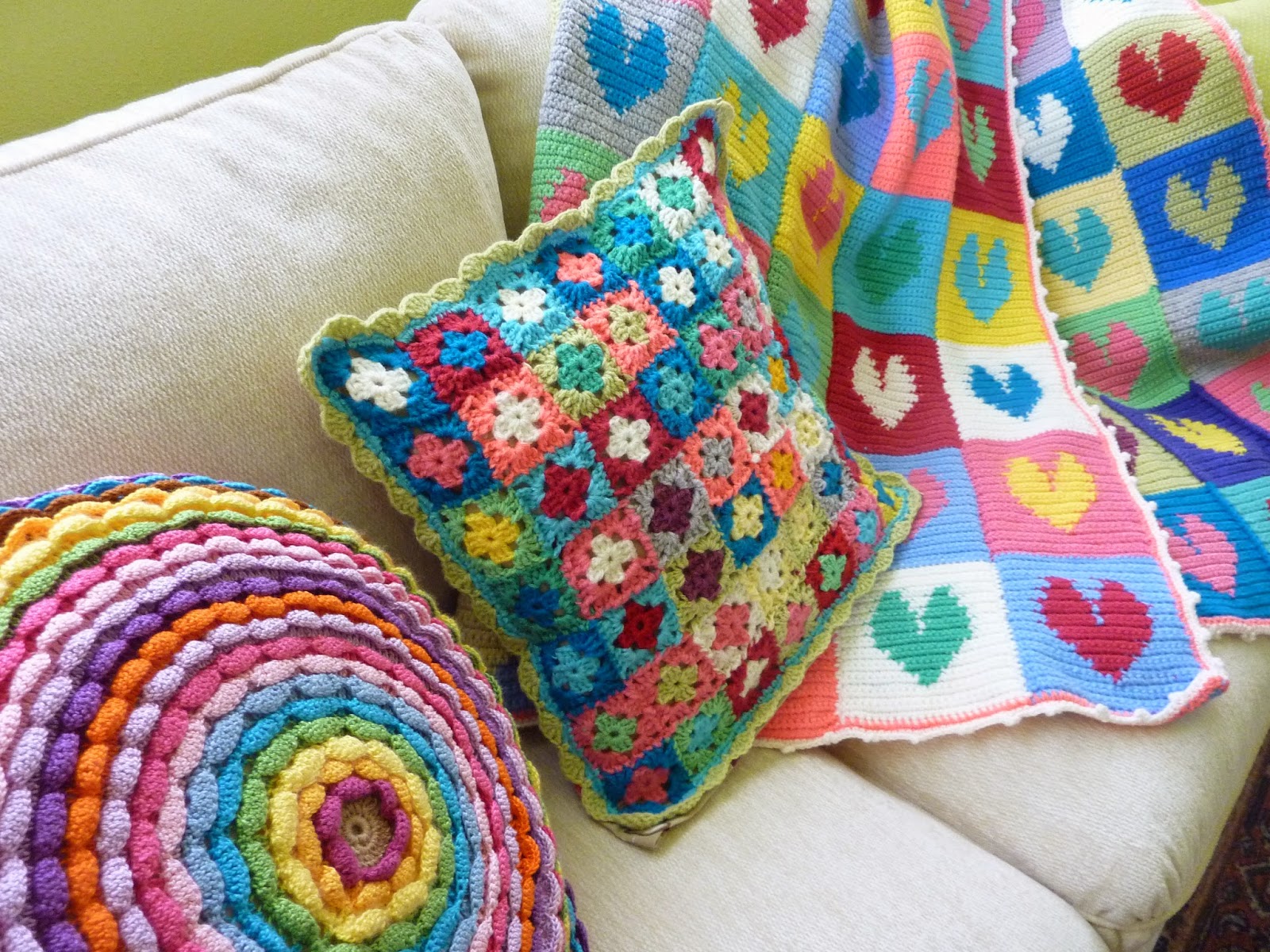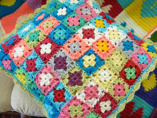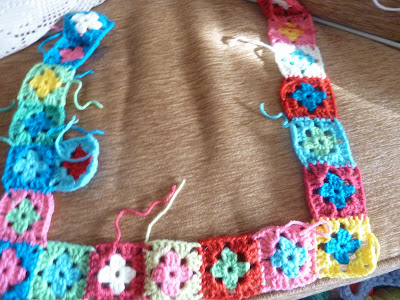 Quando comprei o fio - 1 novelo de cada cor - pretendia iniciar uma manta, mas, pareceu-me que a espessura era excessiva.