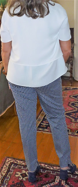 | ... calças vichy azul e branco ... |